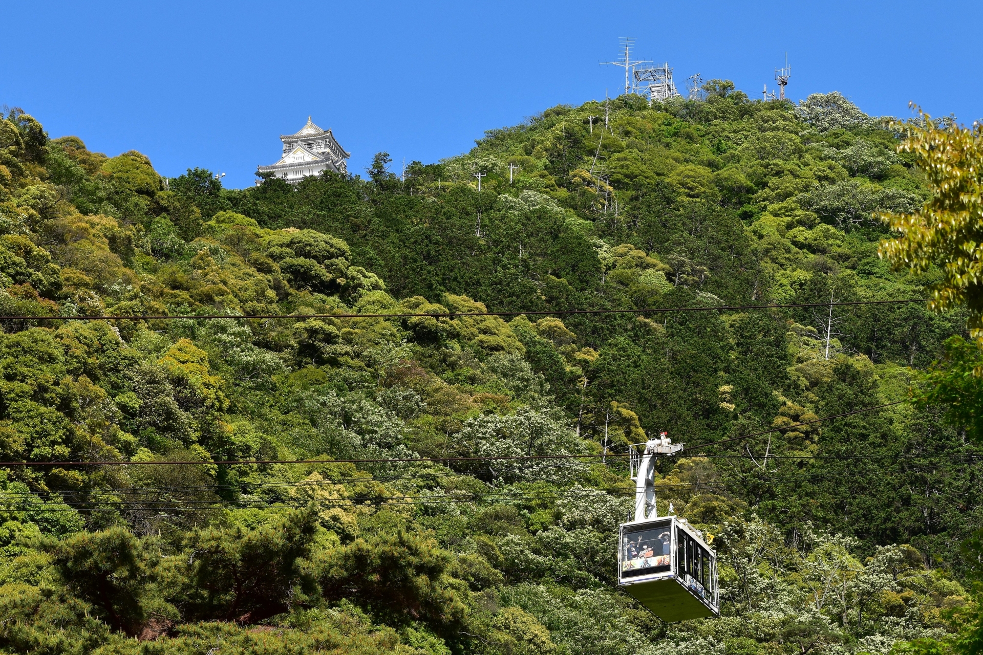 金華山山頂の岐阜城とロープウェイ