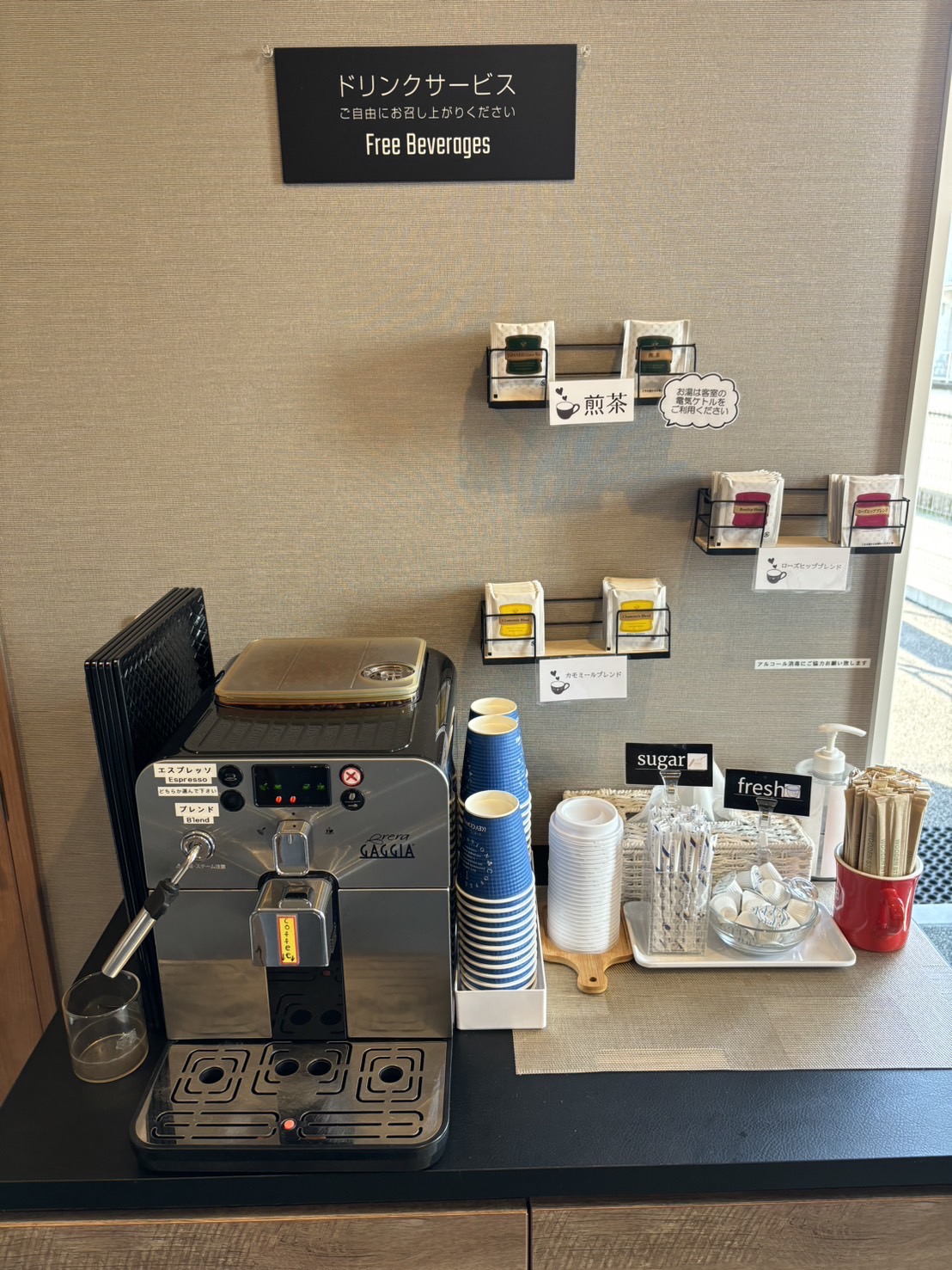 ビジネスマン向けに朝食付きプラン(和食or洋食)が用意されており、ホテル内には「Cafe R9」が併設されており、気軽に立ち寄れるようになっています。