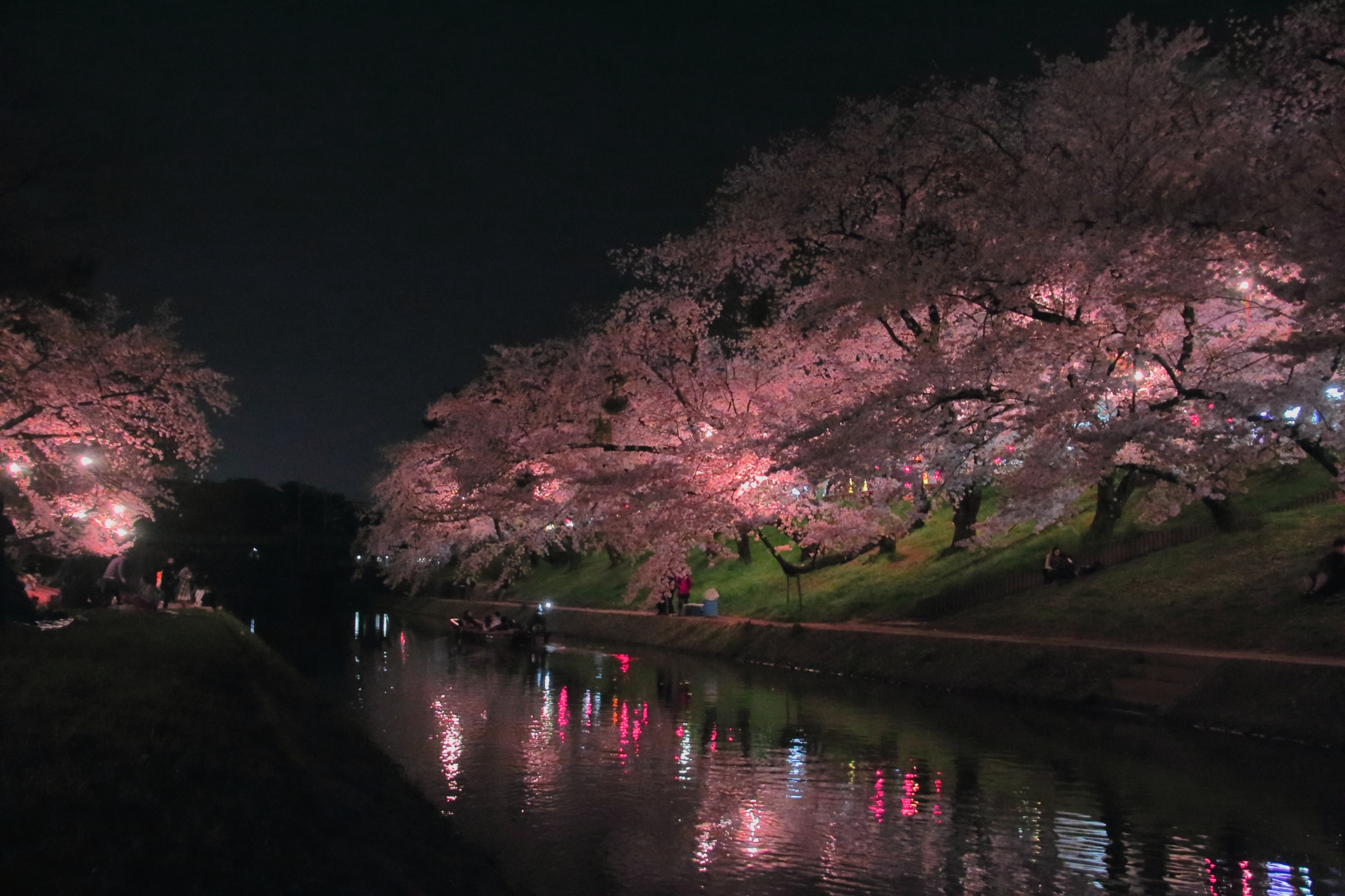 夕方になると公園は再び静かな雰囲気に包まれます。そして、暗くなると同時に始まるライトアップが桜を幻想的な光景に変えました。光と影が織りなす美しい風景に、多くの訪問者がカメラを向けており、夜桜を見ながらのんびりと過ごす時間は日常の喧騒を忘れさせてくれます。